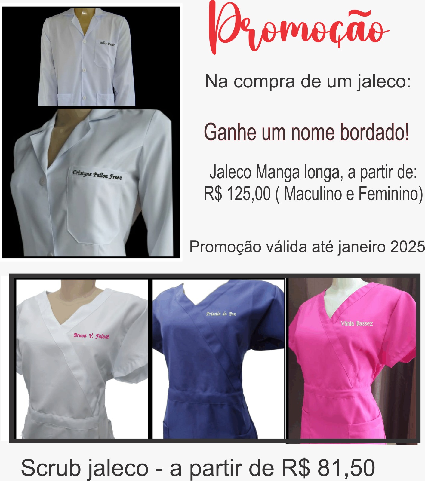 - Vendas e confecção de uniformes como camisetas, polos, camisetas básicas, jalecos, bonés, aventatis, entre outros.